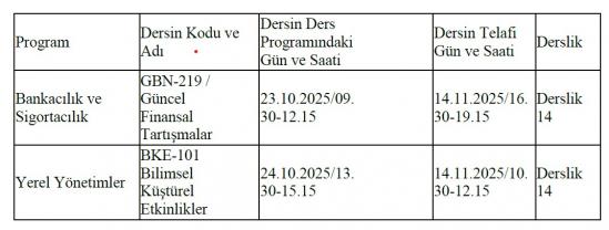 - Öğr. Gör. Mehmet Yaşar ARCA'nın Ders Telafi Programı