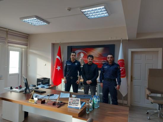 Nevşehir Hacı Bektaş Veli Üniversitesi (NEVÜ) Gülşehir Sosyal Bilimler Meslek Yüksekokulu (SBMYO) Müdürü Doç. Dr. Hüseyin Aras, Gülşehir Emniyet Müdürü Başkomiser Abdullah Akgül ve Gülşehir Jandarma Komutanı Üsteğmen Zafer Bulur’u makamında ağırladı.