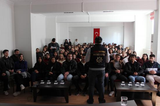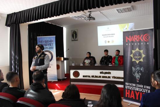 Nevşehir Hacı Bektaş Veli Üniversitesi (NEVÜ) Gülşehir Sosyal Bilimler Meslek Yüksekokulu (SBMYO) öğrencilerine yönelik önemli bir farkındalık etkinliği gerçekleştirildi. Nevşehir Emniyet Müdürlüğü Narkotik Suçlarla Mücadele Şube Müdürlüğü tarafından düzenlenen konferansta uyuşturucu ve bağımlılıkla mücadele konusu kapsamlı bir şekilde ele alındı.