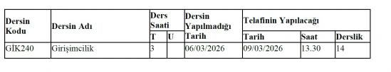 - Doç. Dr. Mehtap ARACI KAZICI'nın Ders Telafi Programı