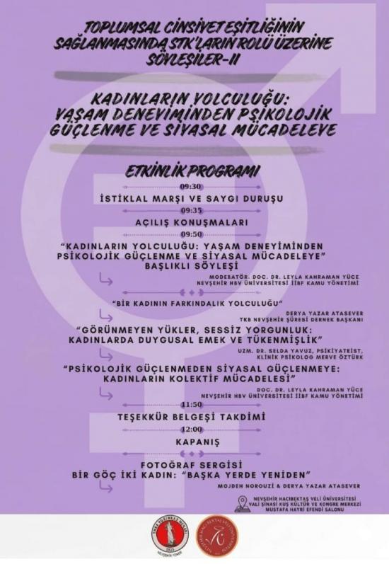 programın başlığı ise oldukça dikkat çekici: “Kadınların Yolculuğu: Yaşam Deneyiminden Psikolojik Güçlenme ve Siyasal Mücadeleye”.