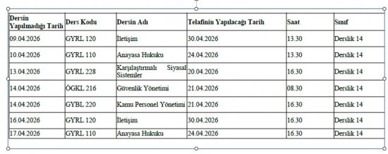 - Öğr. Gör. Eyüp GÜRCAN'nın Ders Telafi Programı