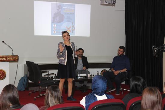 Gülşehir Sosyal Bilimler Meslek Yüksekokulu Konferans Salonu’nda gerçekleştirilen söyleşide, Nevşehir Hacı Bektaş Veli Üniversitesi Uluslararası İlişkiler Ofis Koordinatörü Doç. Dr. Başak Coşkun ile Uluslararası İlişkiler Ofisinden Öğr. Gör. Şükrü Aydın konuşmacı olarak yer aldı. Söyleşinin moderatörlüğünü ise Gülşehir Sosyal Bilimler Meslek Yüksekokulu Müdürü Doç. Dr. Hüseyin Aras üstlendi.